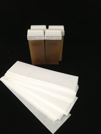 Sie erhalten 4 x Wachspatrone Honig und 100 Vliesstreifen ca. 23 x 7 cm,