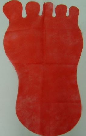 Einweg Bodenmatte Vlies in Fußform, Farbe Rot, sehr gut für den Einsatz in der Kosmetik bzw. Fußpflegepraxis geeignet, zum Abstellen der Füße.